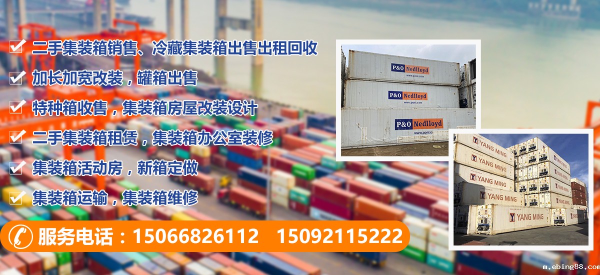 主营;二手集装箱销售、华体会官方登录入口出售出租回收、加长加宽改装,罐箱出售,特种箱收售,集装箱房屋改装设计,二手集装箱租赁,集装箱办公室装修,集装箱活动房,新箱定做,集装箱运输,集装箱维修等业务